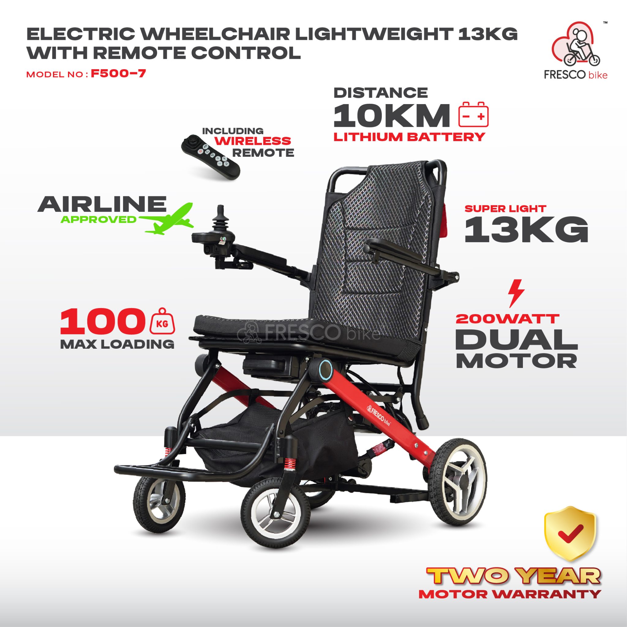 Experience the perfect balance of portability and performance with this ultra lightweight 13KG electric wheelchair. Designed for easy lifting, compact storage, and smooth daily use, it’s ideal for travel, errands, and indoor or outdoor mobility. With airline-approved battery, dual motor power, and wireless remote control, you get reliable movement, safety, and convenience — all in one smart, user-friendly design.